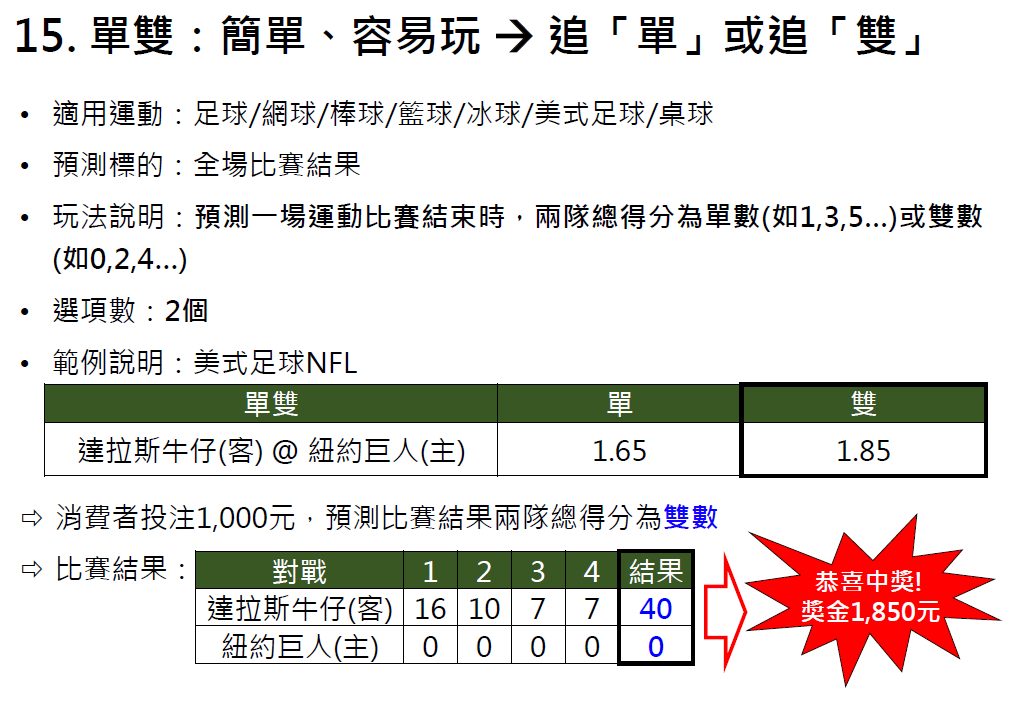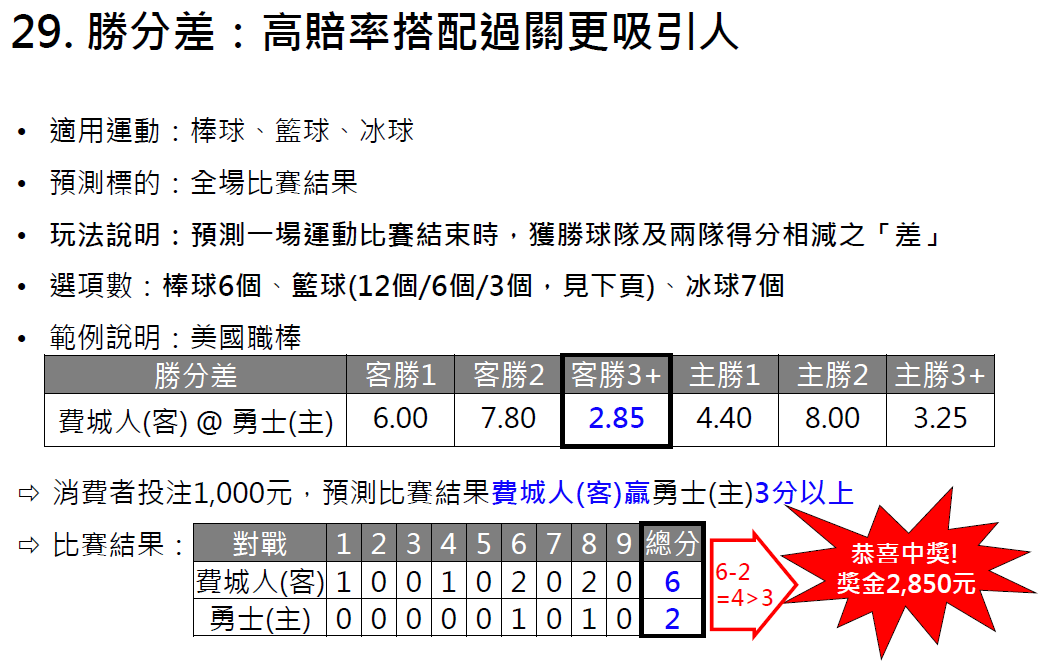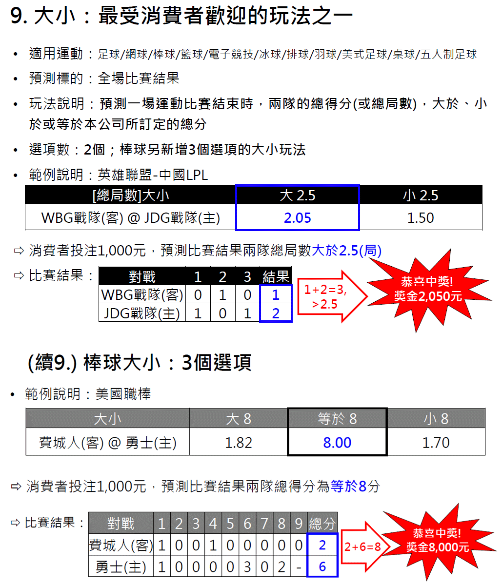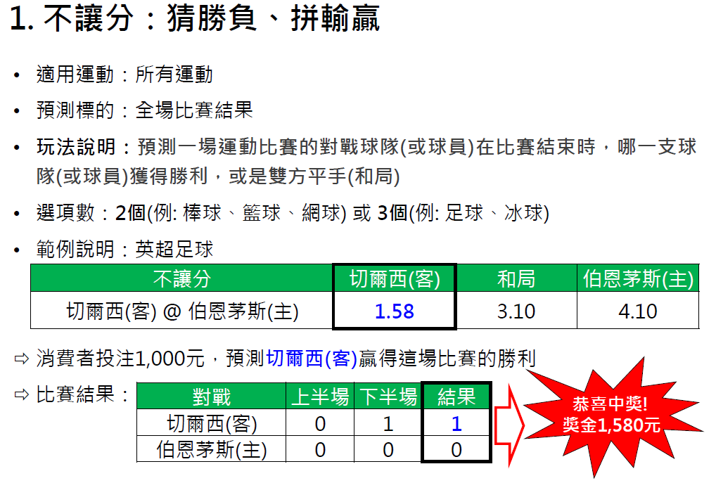 投注方式:可前往實體台灣運彩彩券行現金投注,或使用線上投注系統(需先申請虛擬通路會員)。