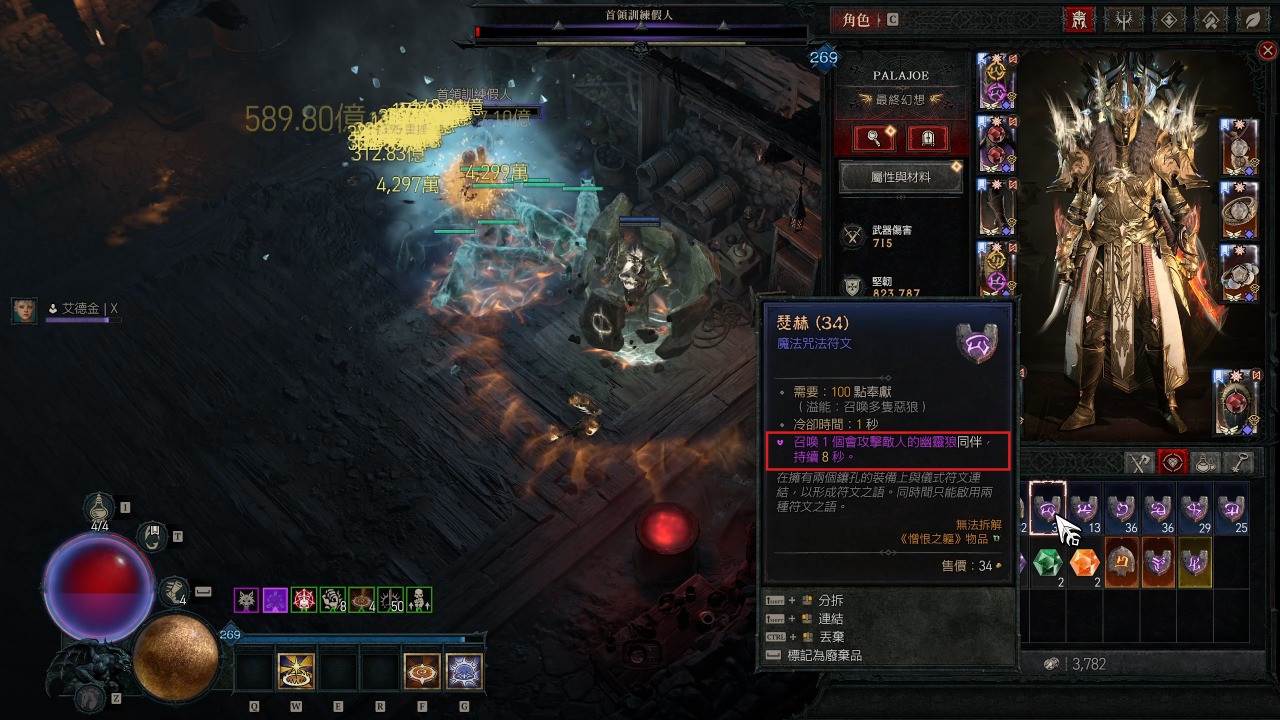 詞綴挑選力量、爆擊率、各種增傷技能等級