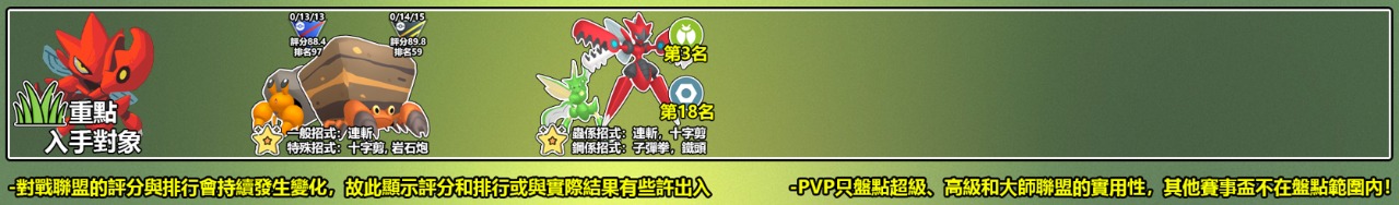超級、高級聯盟百名內的主流戰力之一,蟲係38名、岩石係33名
