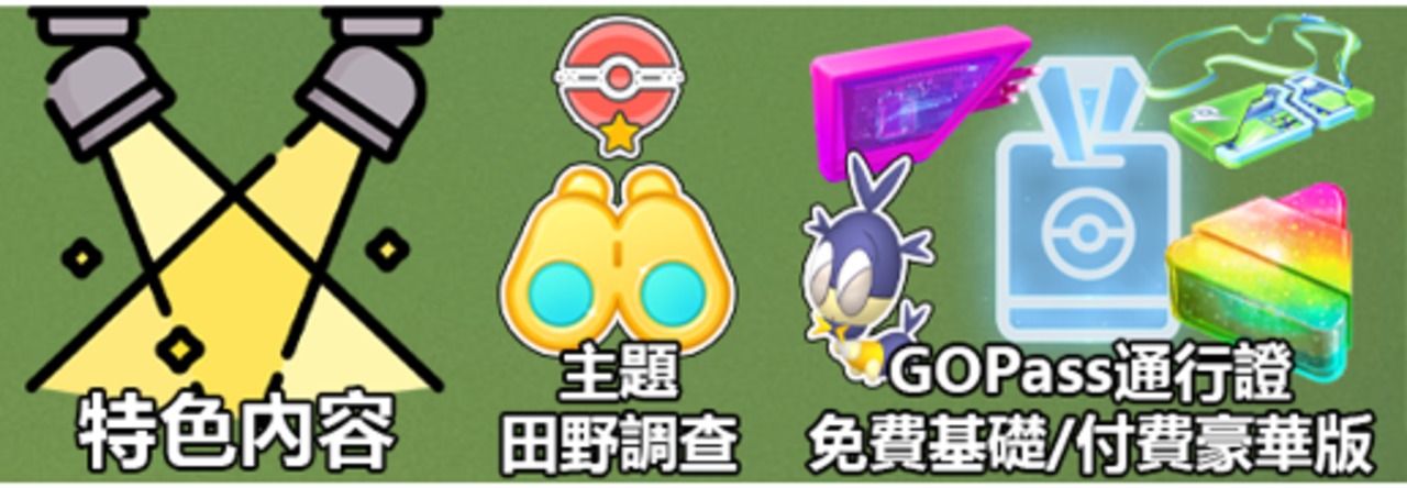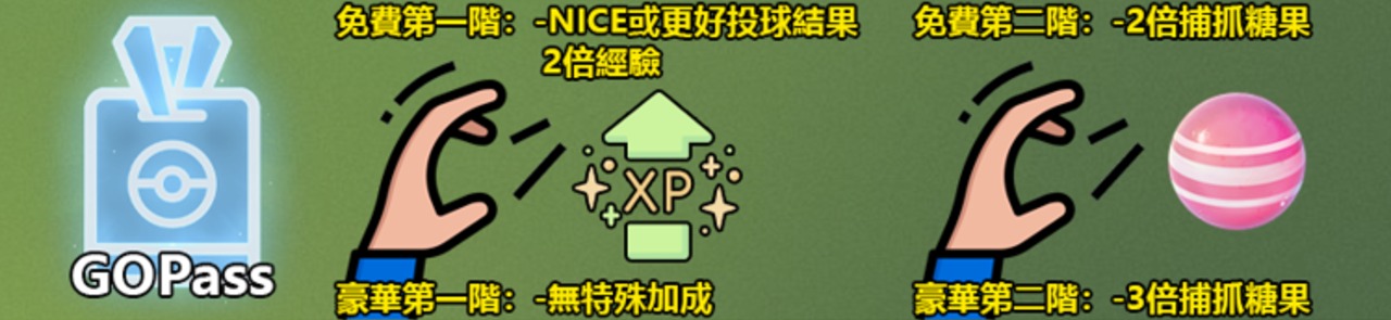 (免費版GOPass的主要獎勵分別有索偵蟲、星塵、經驗、誘餌模組和超級球等等)