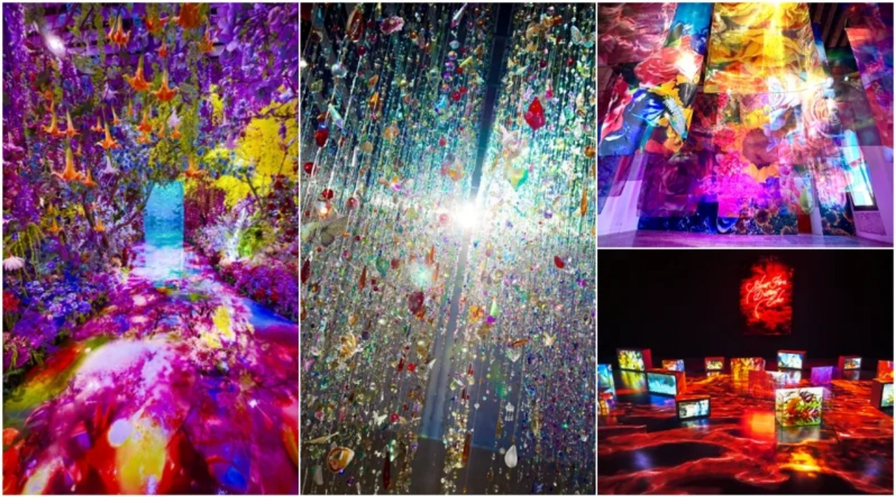其中最吸睛的亮點《深淵彼岸的夢》,以「720度無死角影像空間」搭配繽紛花海場景,觀眾彷彿步入無限延伸的鏡面幻境;展區《光之細語,色彩之夢》則由多達2,000條水晶串飾構成,蝴蝶、花朵、愛心、水晶隨著燈光折射閃爍,讓整個空間像夢境般流動。