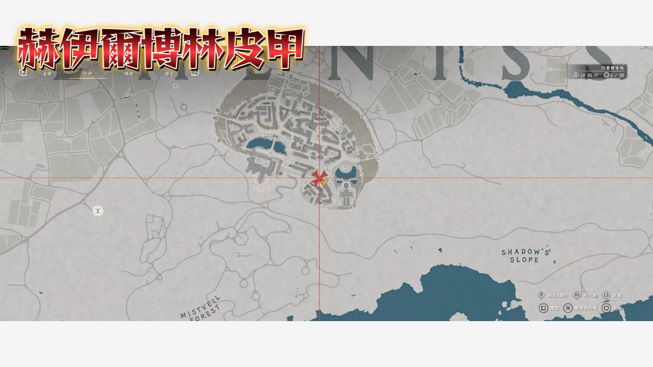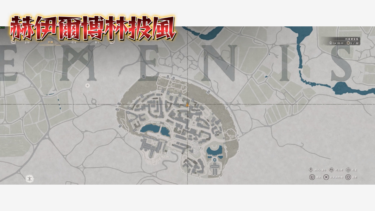 接下來我們要去Demenis城裡右下角的教堂高塔,地圖上看一下位子,這邊要爬上去,但不用擔心,沿途都有落腳點,我們來到高塔的正門的左邊,從左邊上去,可以選擇爬上去也可以用勁法跳上去,爬上去後會看到有個地方外牆是圓柱子的結構,中間並排的兩個圓柱子外牆中間是可以推進去的,進去打開寶箱就可以得到赫伊爾博林盔甲。
