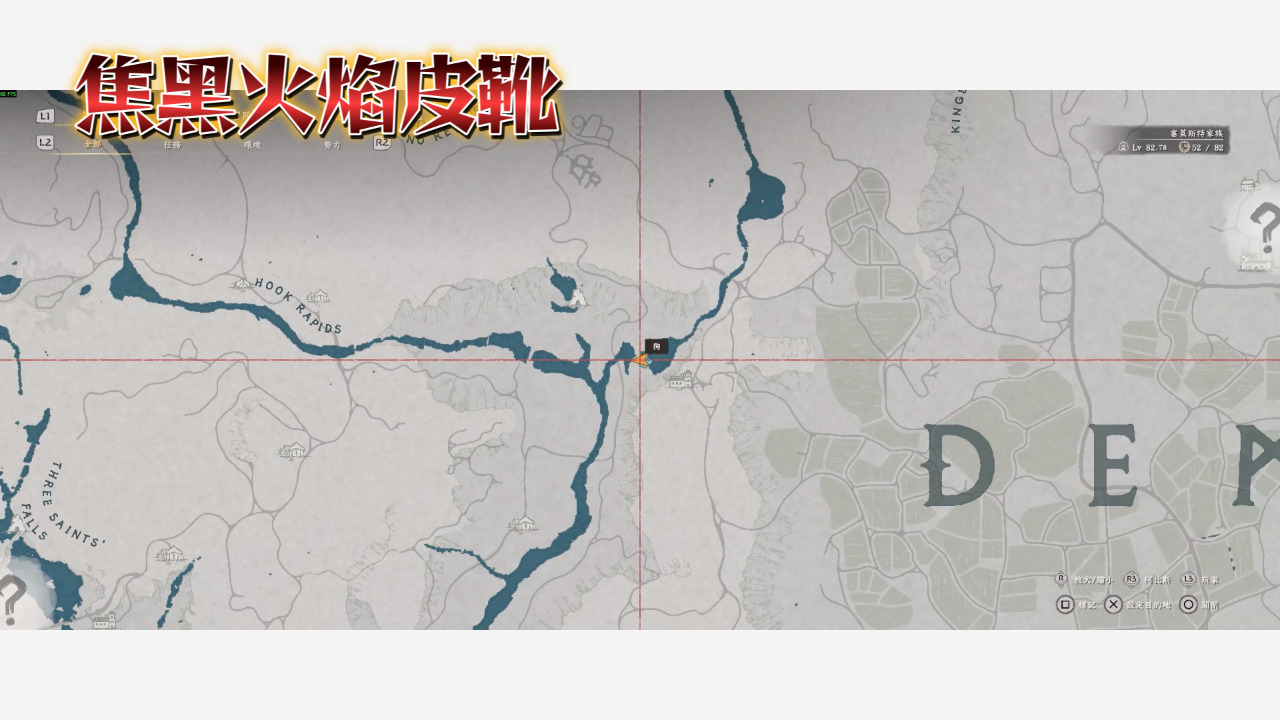 接著我們去這個點附近的無盡浪濤洞穴,我們看大地圖,這個點在附近不遠處,也有一座大瀑布,如果你跟我一樣是在瀑布頂端,就飄到最下面的左邊就好,一樣刺破瀑布就可以進去拿到焦黑火焰皮靴。