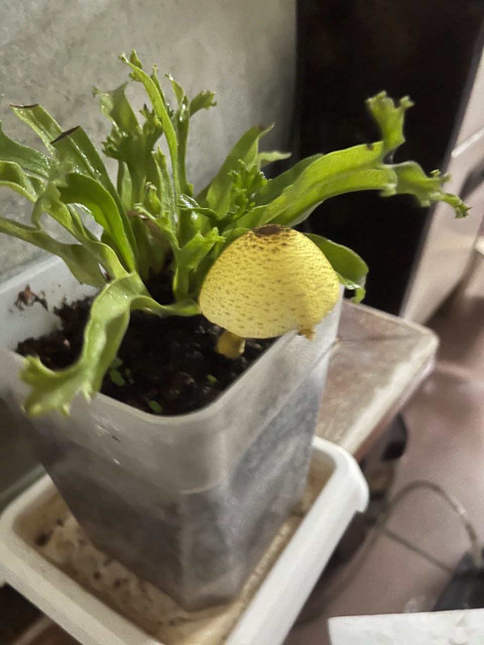 盆栽瞬間就冒出了一顆新鮮的菇菇,