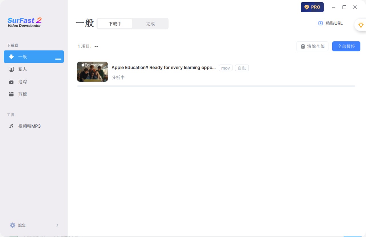 4. 貼上連結,SurFast Video Downloader會自動解析添加下載任務,等待下載完成後,你就會得到一個可以直接拖入剪輯軟體的 MOV 檔案。