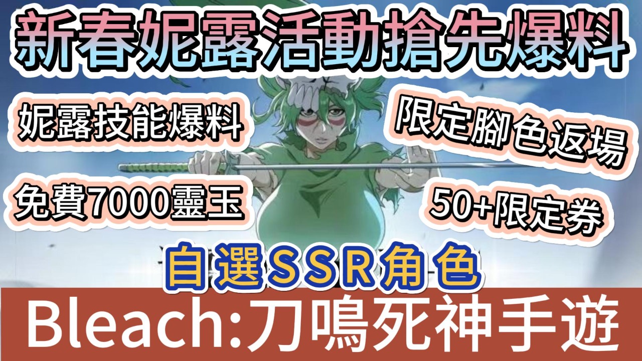 【BLEACH:刀鳴】妮莉艾露|新春活動搶先爆料|2月13日限定角色返場|免費7000+靈玉|妮露技能搶先看|牛頭一護消息|#bleach刀鳴 #阿翊 #遊戲 #手遊 #bleach #死神 #死神禮包碼