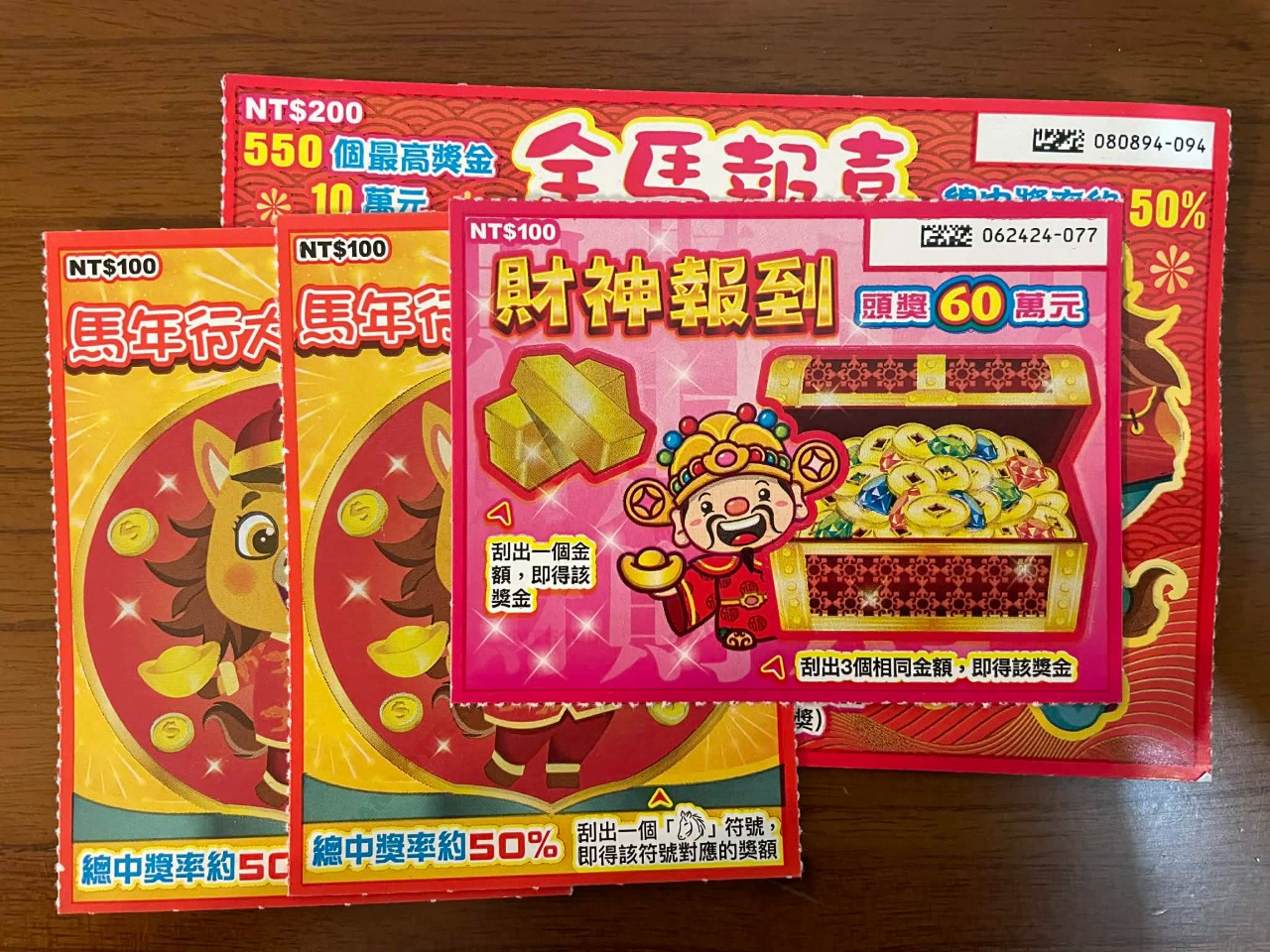 日前我分享2026 馬年刮刮樂中獎率≠賺錢率?2026馬年刮刮樂期望值排行出爐! 上次挑戰一張1000的新年刮刮樂#1 1000元刮刮樂實測!我刮《1200萬大吉利》…你猜中多少?,最後刮到500元,小虧500元(有人成功猜對) 於是我到彩券行後,再次懷抱夢想換成3張100的和一張200的刮刮樂,大家覺得這次中多少呢?