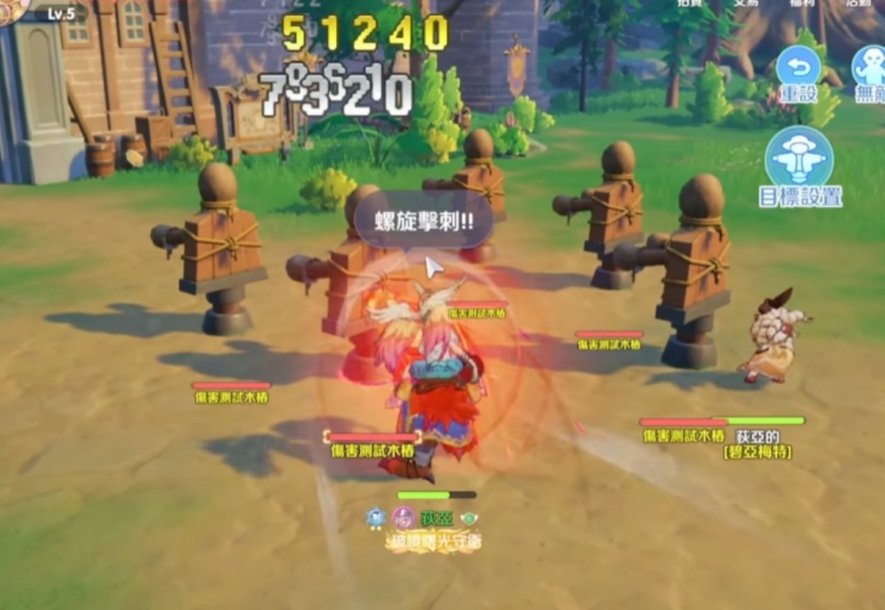 秒傷測試:以平民機體測試,無腦連續施放螺旋擊刺觸發巧打,秒傷約落在 12 萬至 15 萬 之間,表現相當穩定。