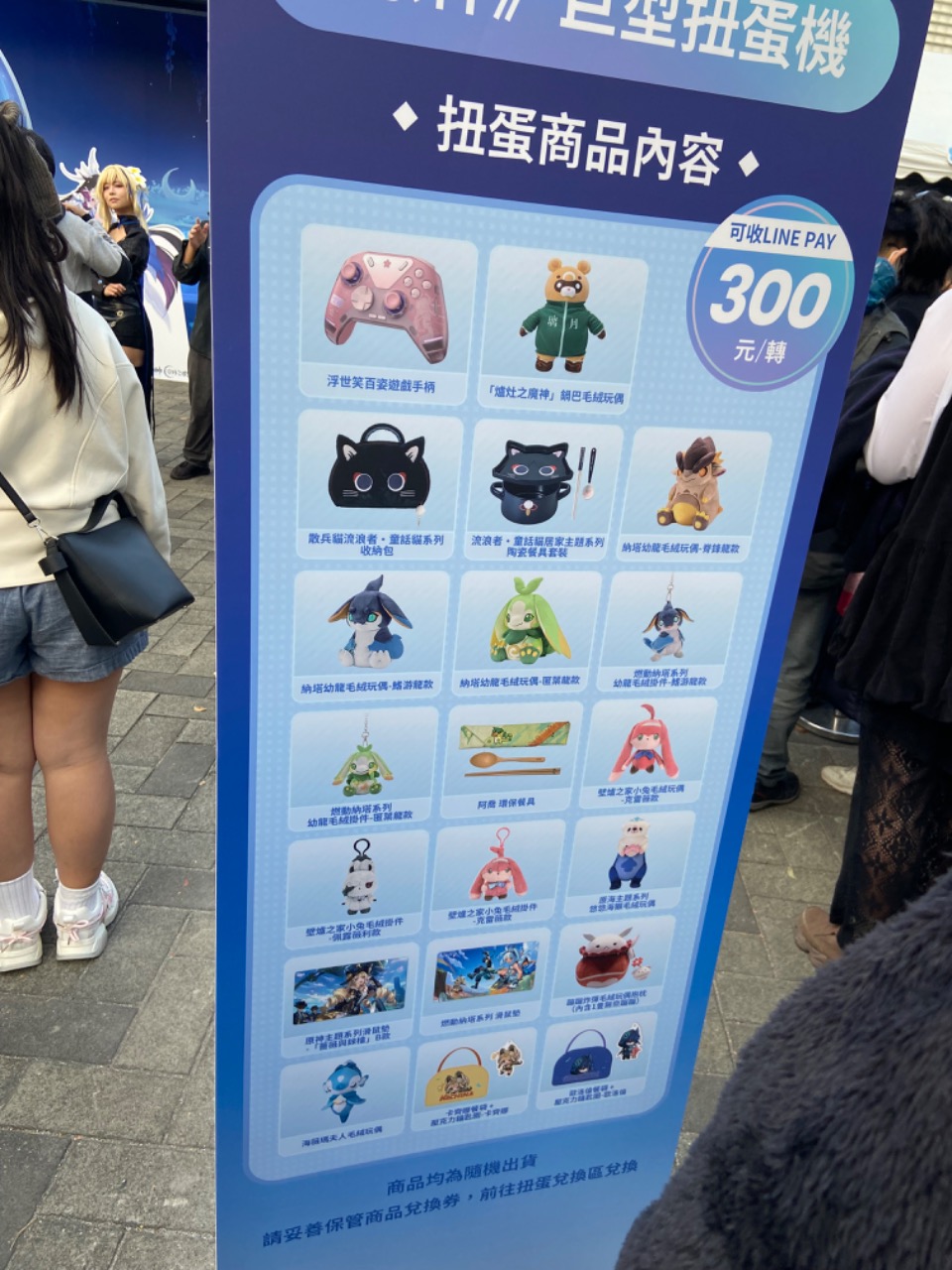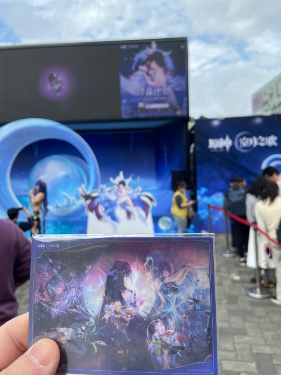 1/16-1/18原神在華山舉辦的實體主題活動,現場打卡可以領到抽獎券和虛寶卡一張,另外跟工作人員講通關密語可以拿到一張光柵卡很不錯,舞台有coser和派蒙可以給大家合照很可愛,很多玩家都有自發性的裝扮角色去拍照很有趣,有扭蛋機可以玩,一扭50~300不等,看到有人抽到很大的抱枕很羨慕,可惜隊伍實在太長了所以放棄了QQ,我去了兩天有兩張虛寶卡在這裡跟大家分享一下看有沒有人需要,原神啟動~