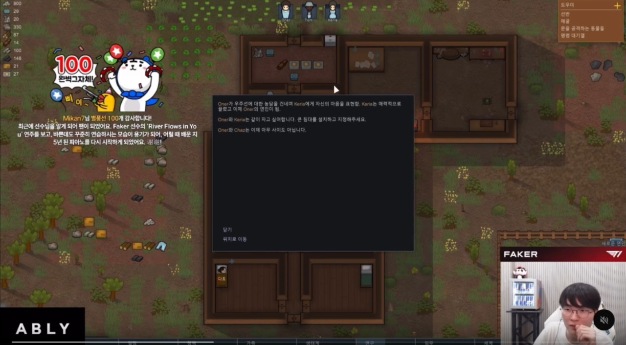 Oner和Keria想要一起睡覺,請設置並指定一張大床。 Oner和Chaz現在已經毫無關係了。