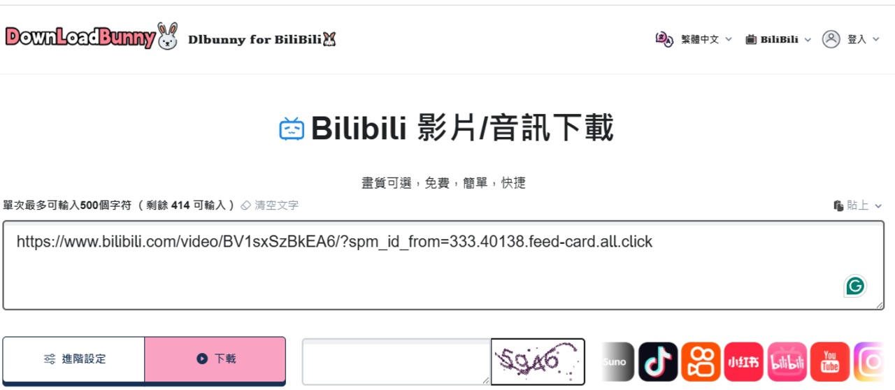 市面上工具百花齊放,若你追求純線上、無需安裝的極簡體驗,DLBunny是一個不錯的選擇!這款免費工具支援Bilibili,可以下載1080P遊戲影片。無論是電競賽事的高速剪輯,還是單機攻略的細膩解說,它都能解析,並且提供多種下載選項,連手機用戶也能輕鬆操作——只需複製B站分享連結、輸入簡單驗證碼,按下「下載」等候幾秒,檔案直達裝置。適合新手或臨時需求,雖然遊戲影片較長時下載可能偶爾中斷(若意外關閉視窗需重啟),並帶有少量廣告,但整體穩定性高,不支援批量下載,對單片實況仍是零門檻入門首選。試試看,保證讓你的離線收藏庫輕鬆升級!