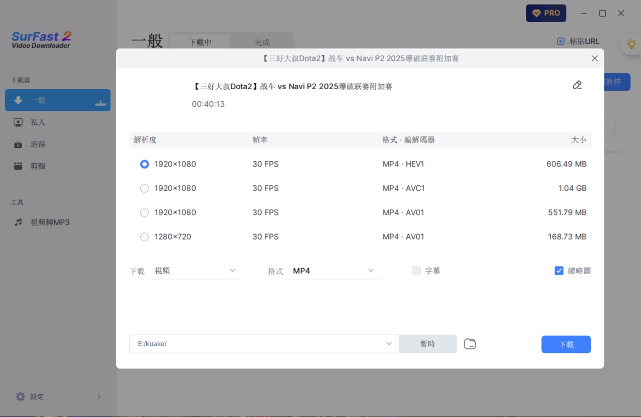 經過實測,SurFast Video Downloader確實能輕鬆解析UP主主頁連結。不過,若UP主影片量龐大(超過上千部),下載過程可能因記憶體負荷或伺服器限制而出現中斷或遺漏(不確定)。同時,儲存需求極高——單部一小時1080p實況約1-2GB,全抓輕鬆破TB,建議先評估硬碟空間。