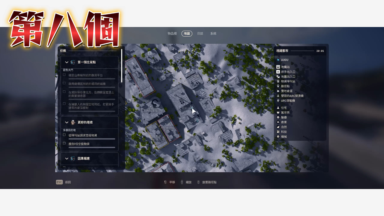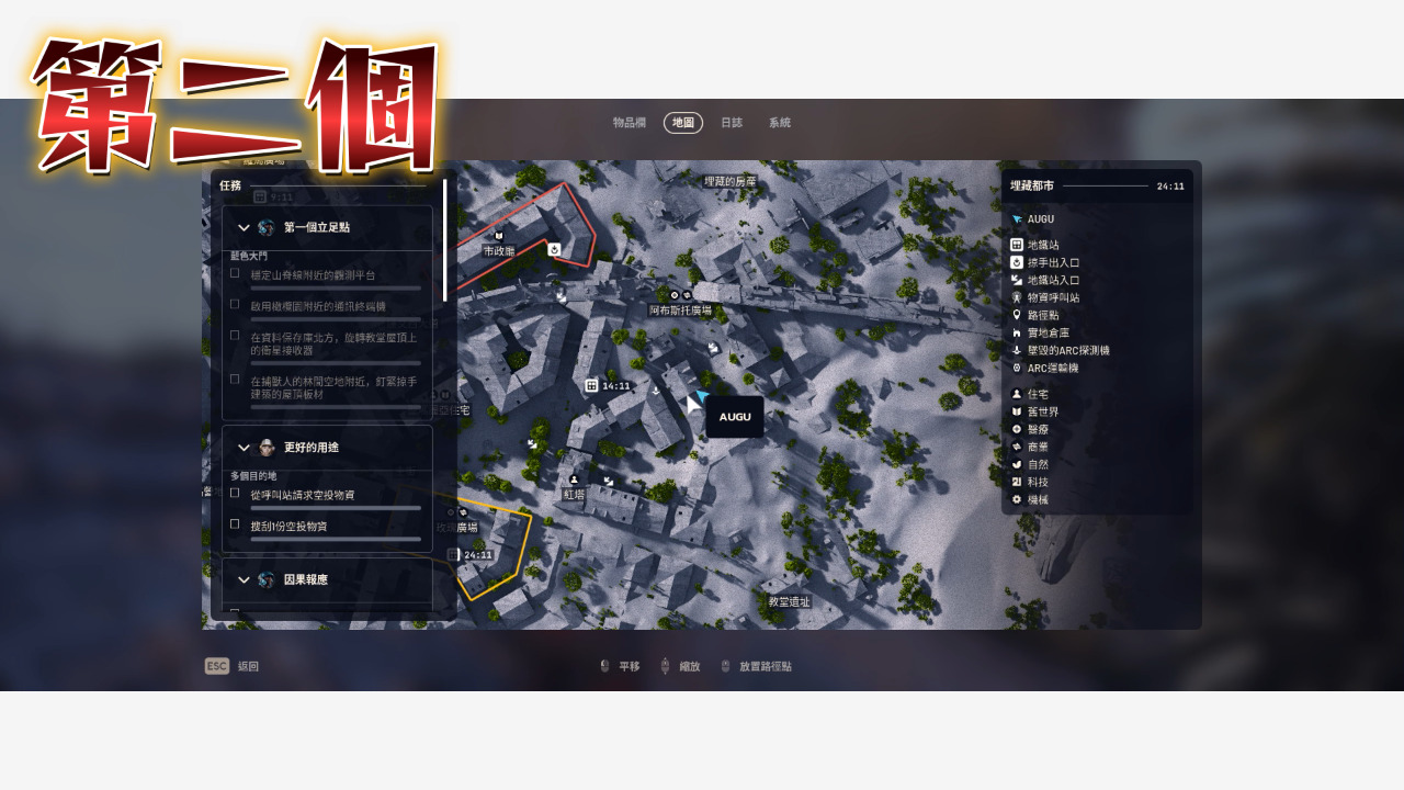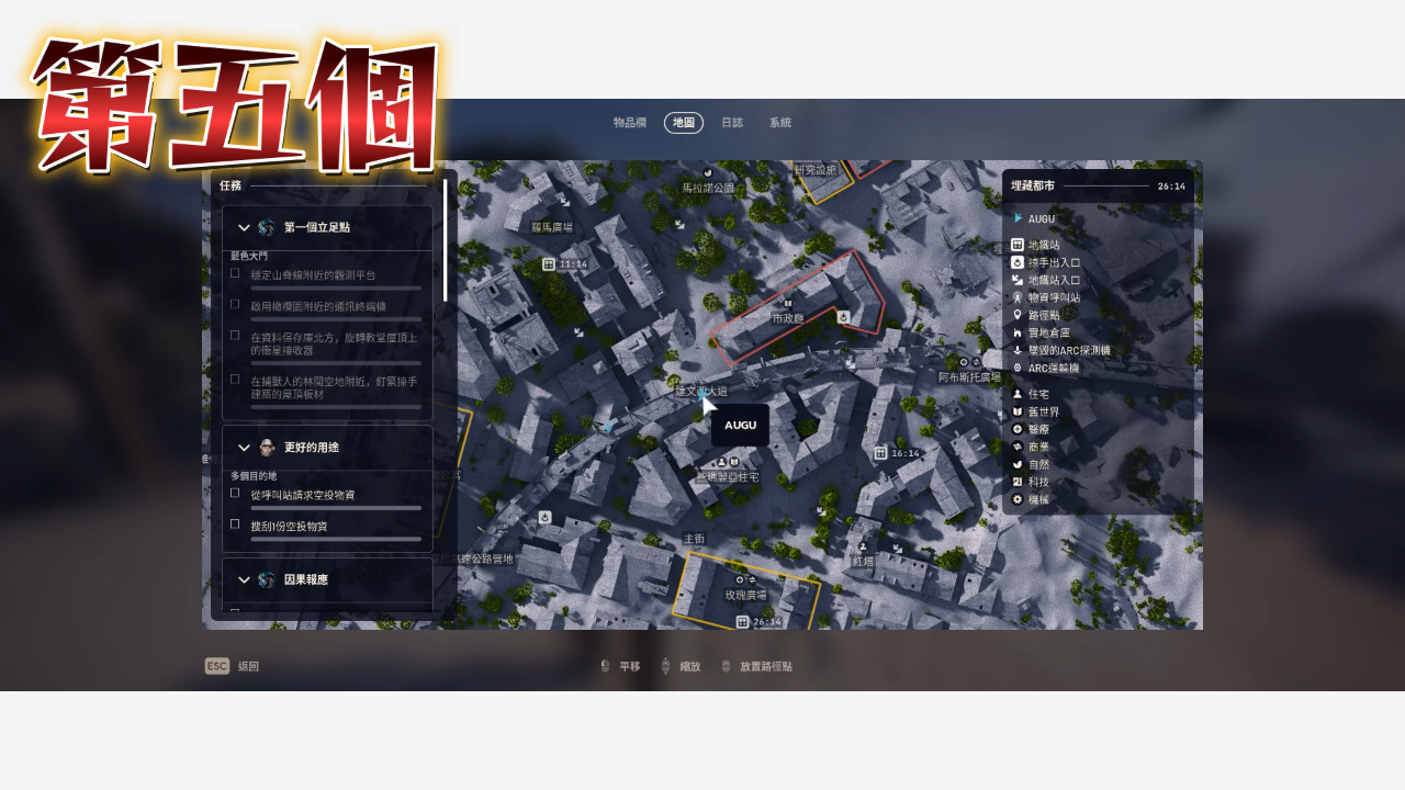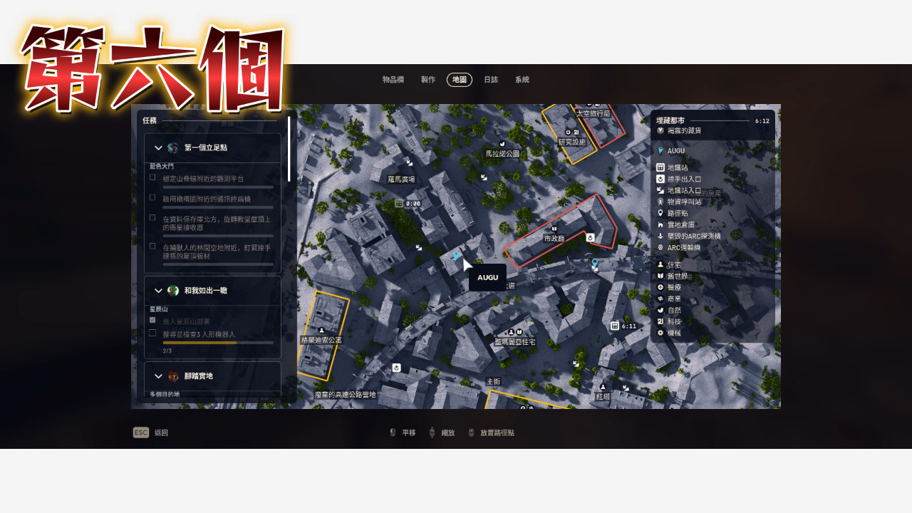 以上就把埋藏都市的點位補完了,沒看埋藏都市第一集的人記得看,廢城這邊還是最好囤物資的地方,地圖比較小點位又比較密集,至於其他需要機械、電子、工業跟出逃零件的玩家可以參考太空港那集,接下來我會開始整理星辰山的點位,都看到這裡了是不是該訂閱一下我的頻道,我是奧古,我們下次見~~~