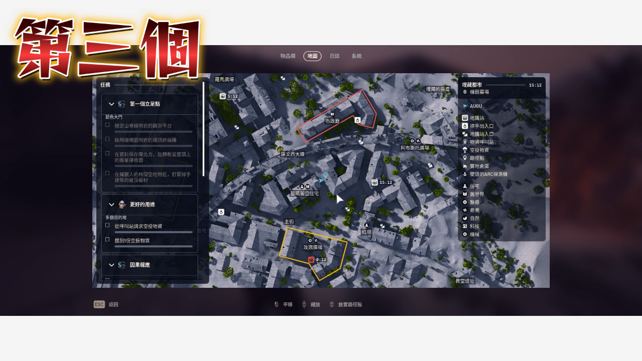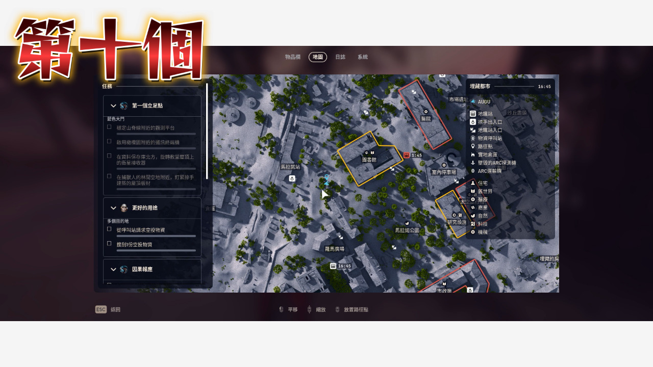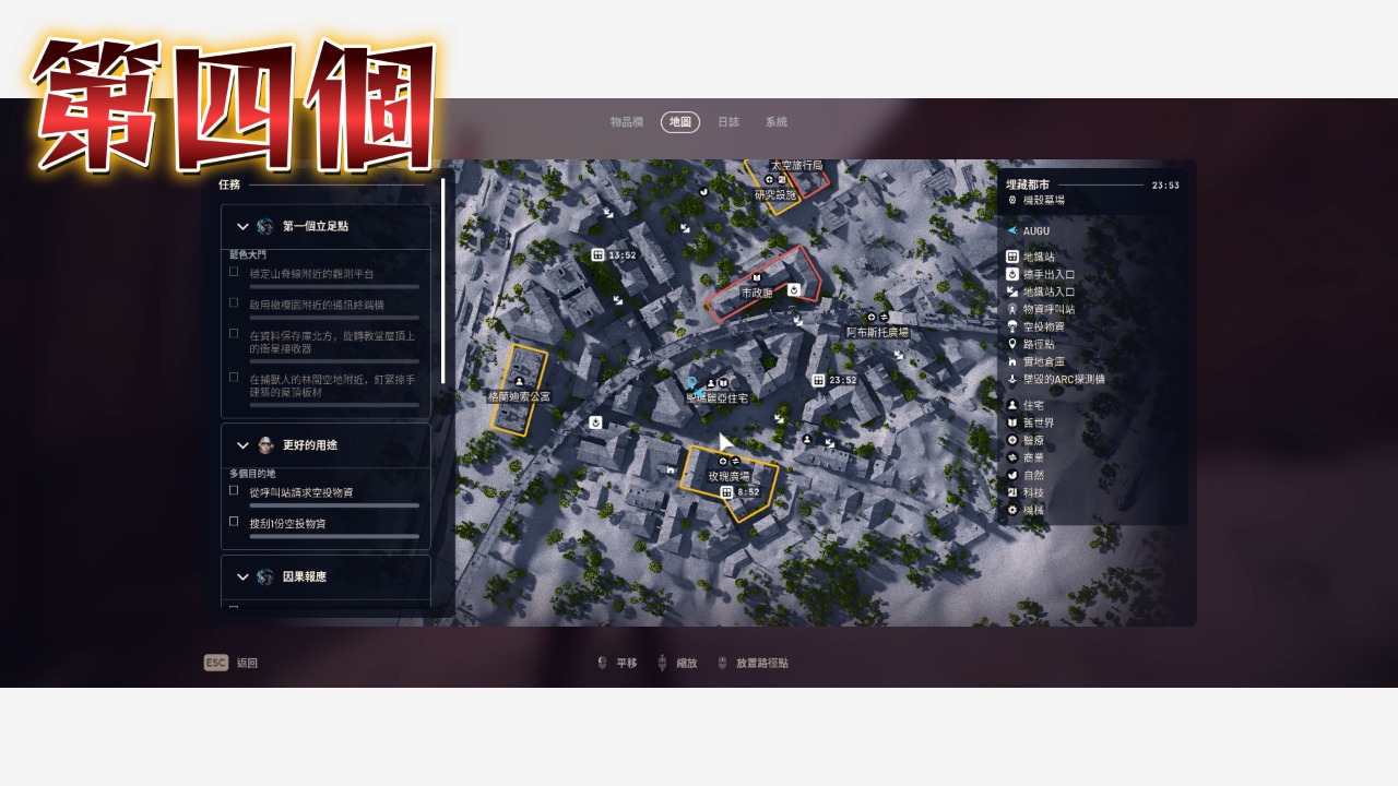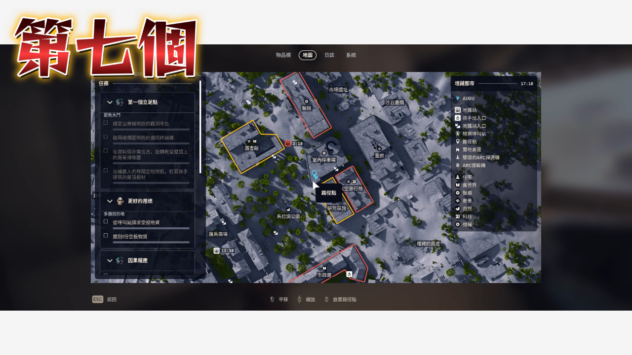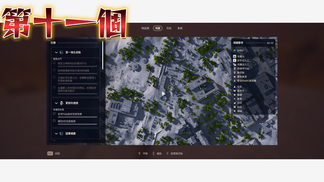 以上就把埋藏都市的點位補完了,沒看埋藏都市第一集的人記得看,廢城這邊還是最好囤物資的地方,地圖比較小點位又比較密集,至於其他需要機械、電子、工業跟出逃零件的玩家可以參考太空港那集,接下來我會開始整理星辰山的點位,都看到這裡了是不是該訂閱一下我的頻道,我是奧古,我們下次見~~~