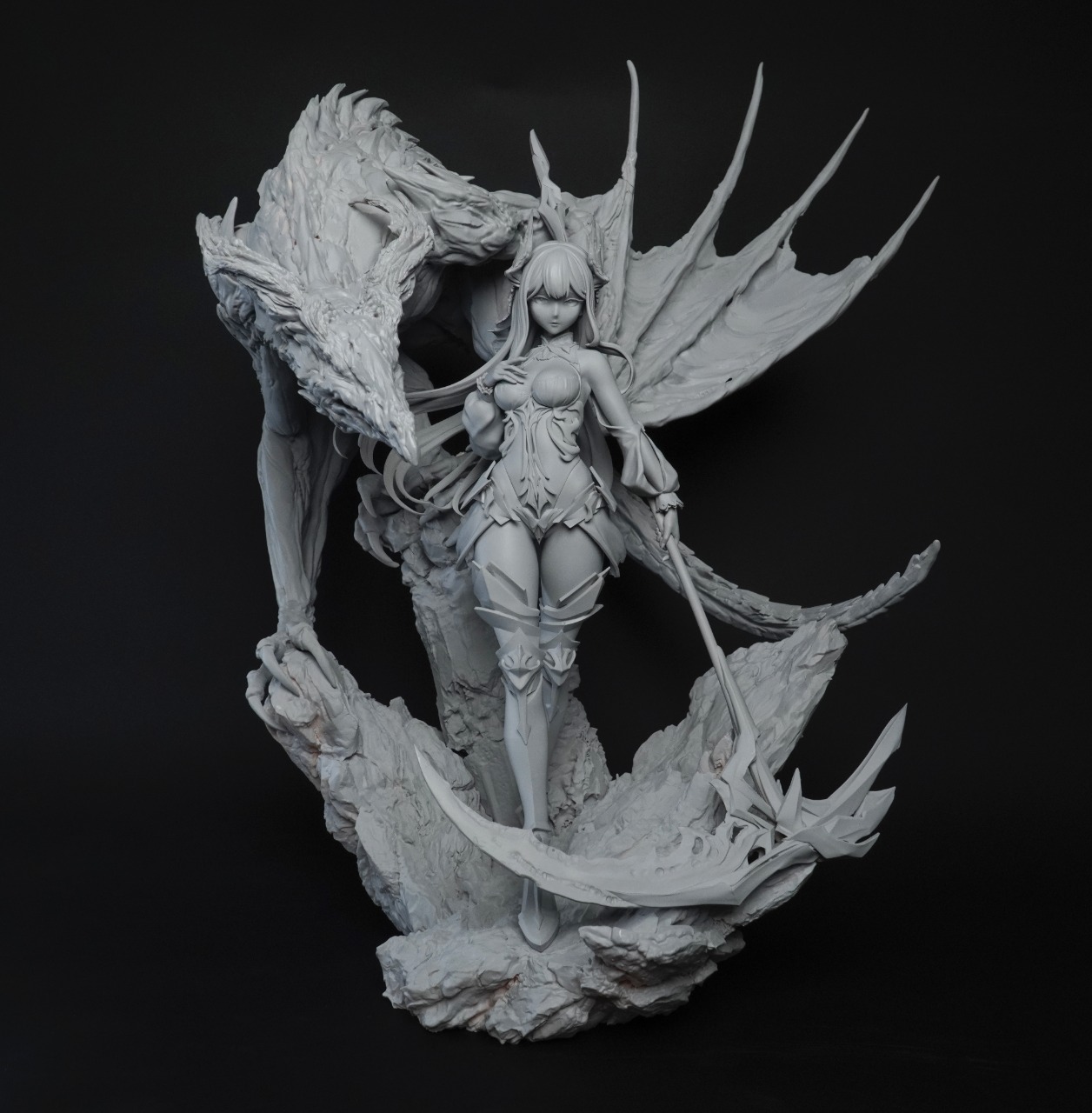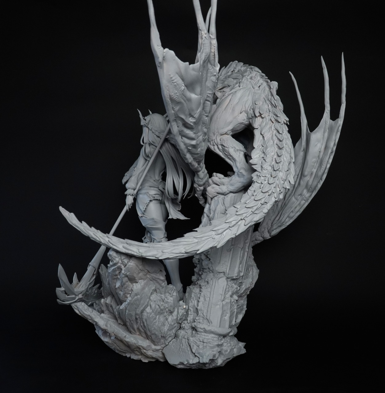 這件作品是我去年WF2024S 製作的未塗裝灰模作品,主要是我喜歡雕女體,同時也想滿足畫龍的樂趣,而誕生的龍女元素作品。